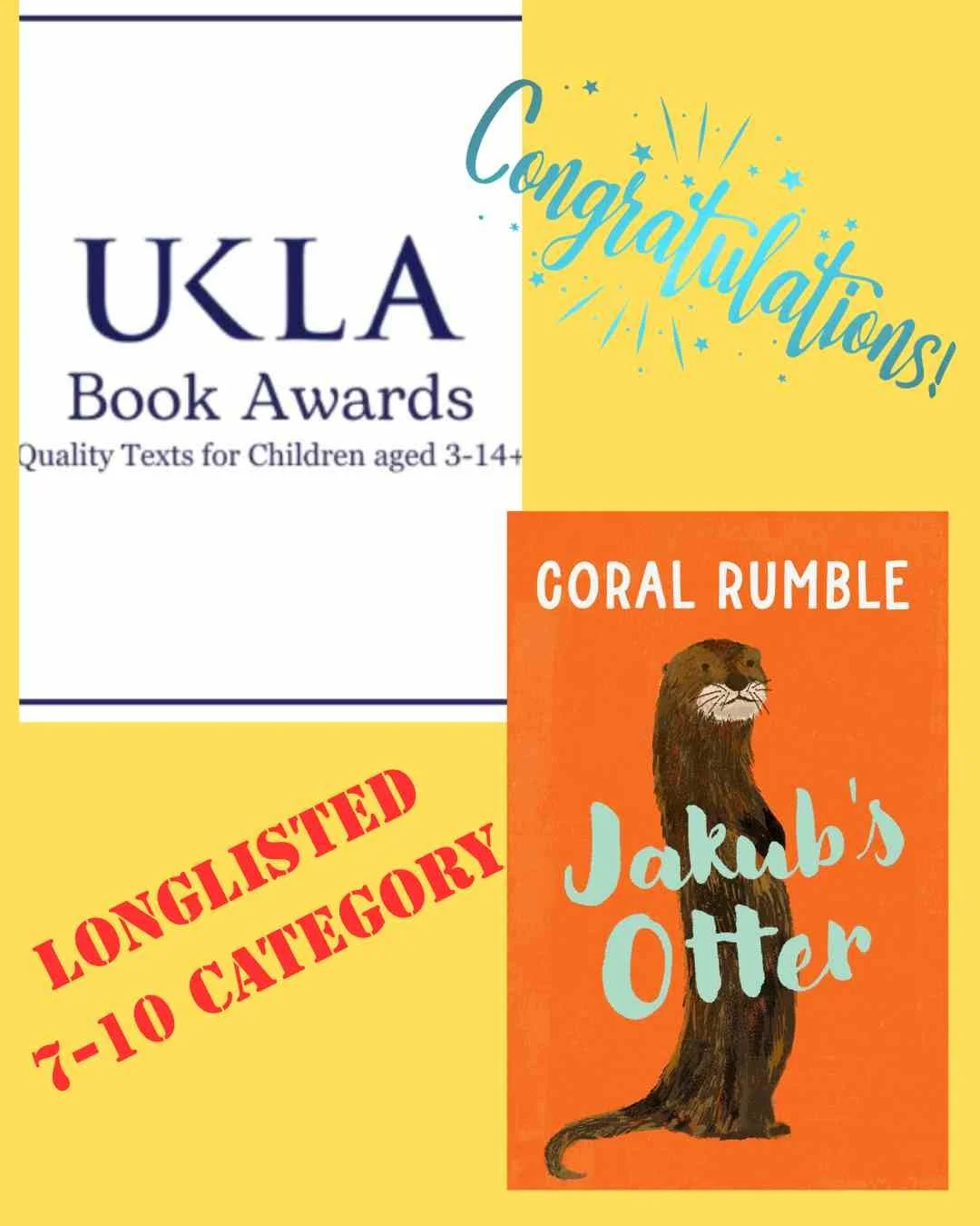 Poet Coral Rumble’s first novel, Jakub’s Otter - which also won the Spark! School Book Award 2024/25, was shortlisted in the School Reading List Children’s Books of the Year 2024, and was a Summer Reading Challenge 2025 selection.