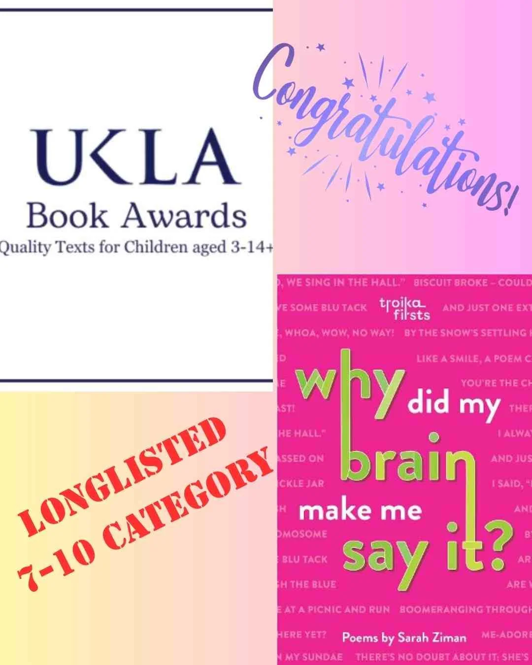And, since they’re such a talented bunch, we get to feel happy quite a lot! Making us beam with pride this week are Coral Rumble and Sarah Ziman, whose latest books are longlisted in the annual UK Literary Association (UKLA) Book Awards 2026.